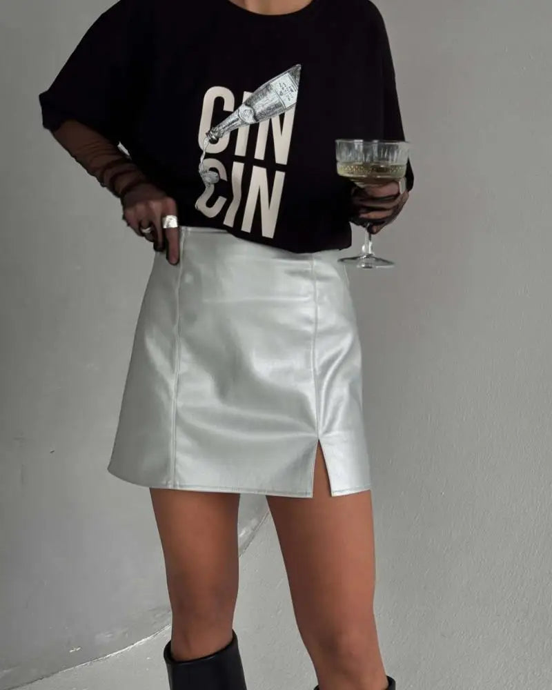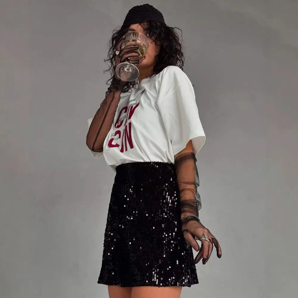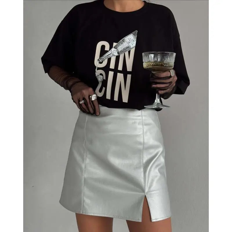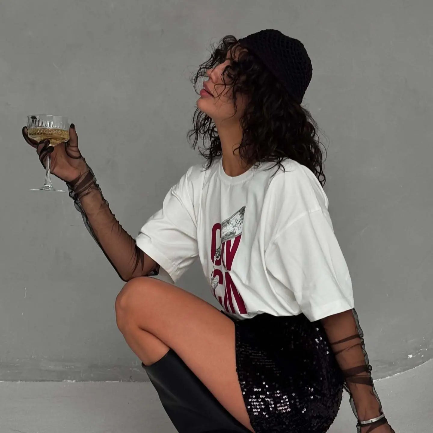T-Shirt Donna con Stampa Lettere Retro - Maglietta Cotone Street Style