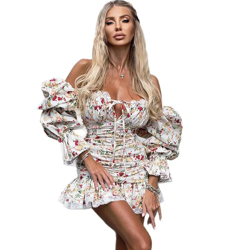 Mini Abito Monospalla con Stampa – Maniche Puff e Vita Alta A-Line