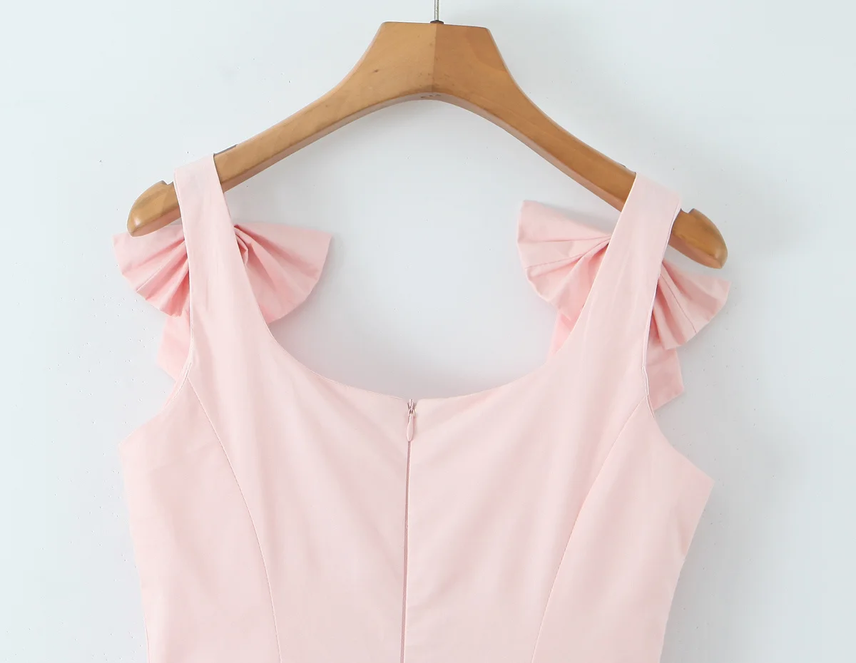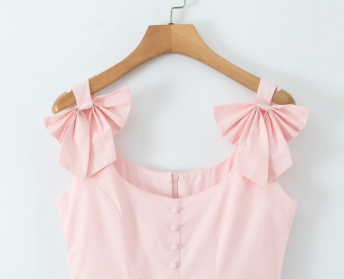 Questo incantevole vestito bianco, con la sua silhouette svasata e il corpetto aderente, è l'incarnazione della grazia moderna. I fiocchi decorativi sulle spalline aggiungono un tocco di romanticismo e originalità, evocando la leggerezza delle ali di una farfalla. Perfetto per eventi speciali, serate estive o un brunch chic, ti farà sentire radiosa e sofisticata. Abbinalo a sandali con tacco per un look raffinato o a sneackers per un tocco più casual ma sempre trandy.