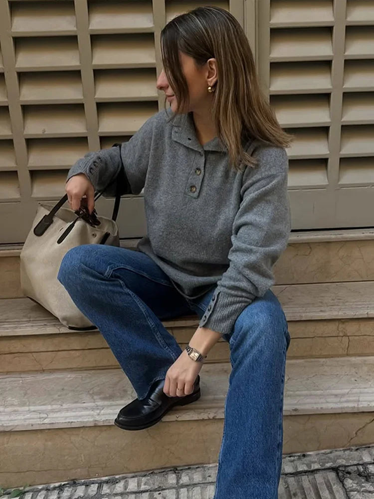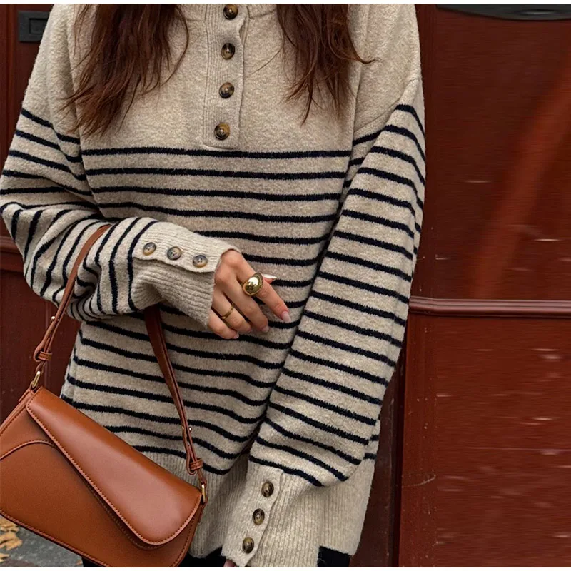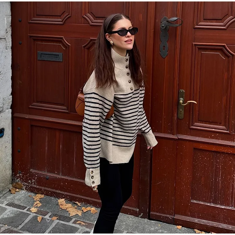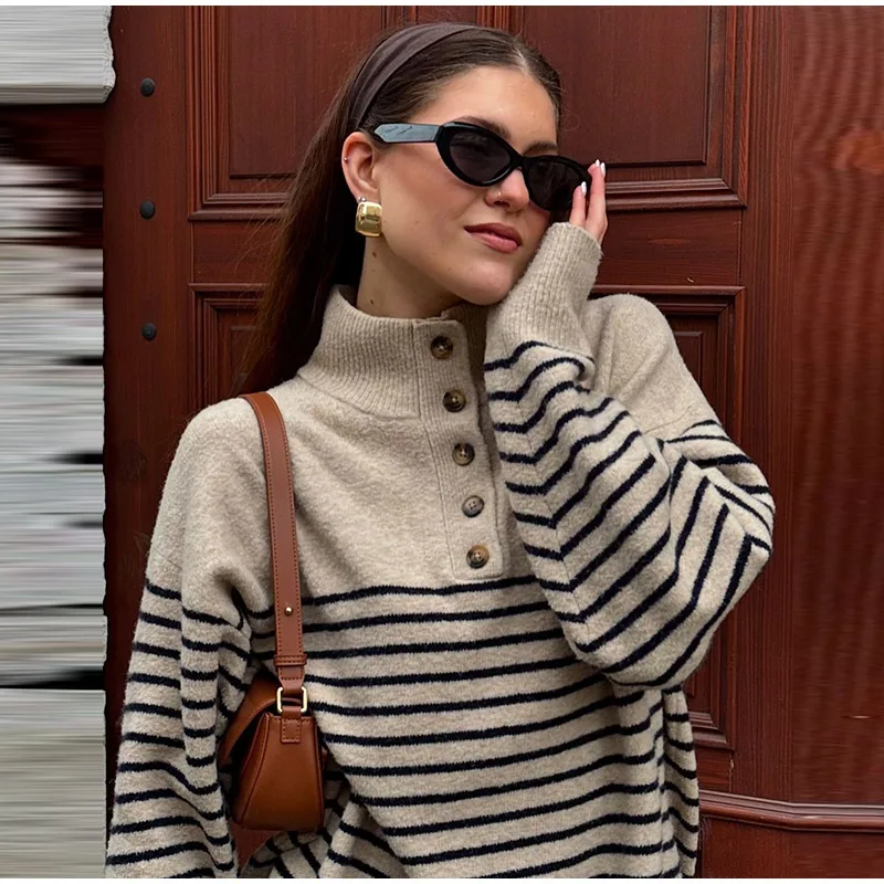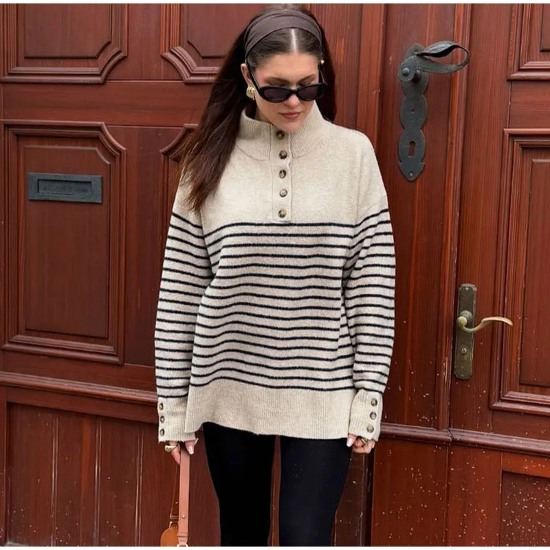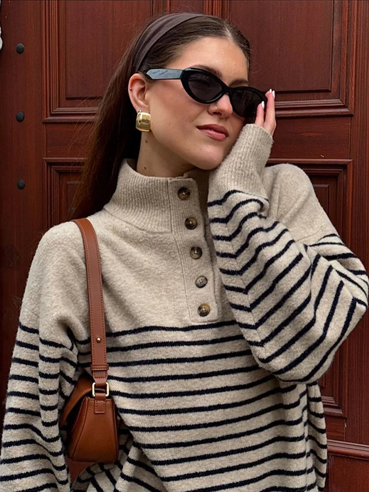 Maglione a Righe Elegante con Bottoni - Il capo oversize perfetto per il tuo inverno!