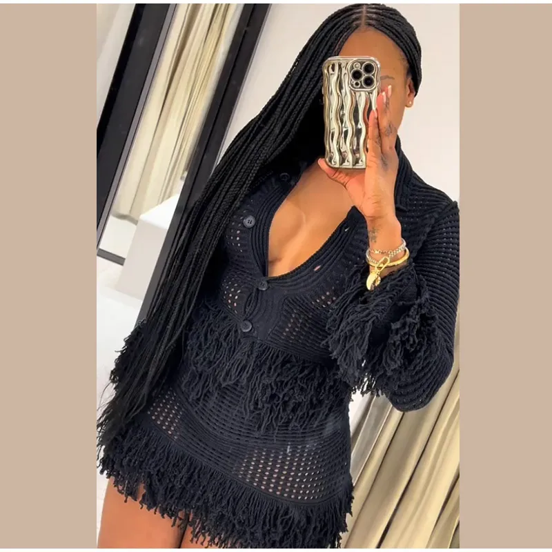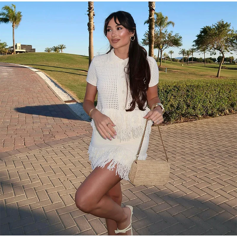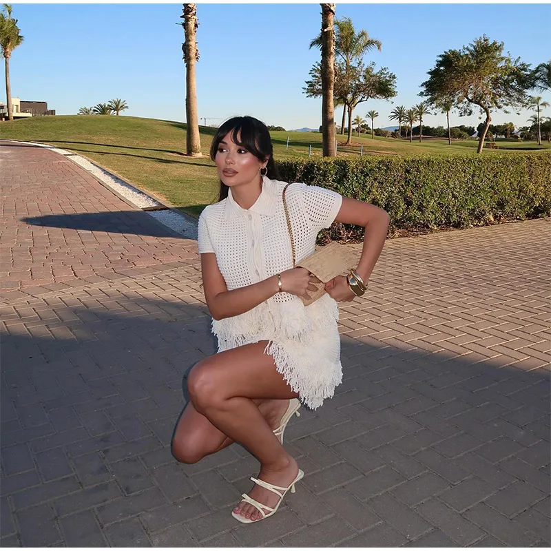 Maglia lavorata a maglia traforata Bianca con frange - eleganza estiva rilassata