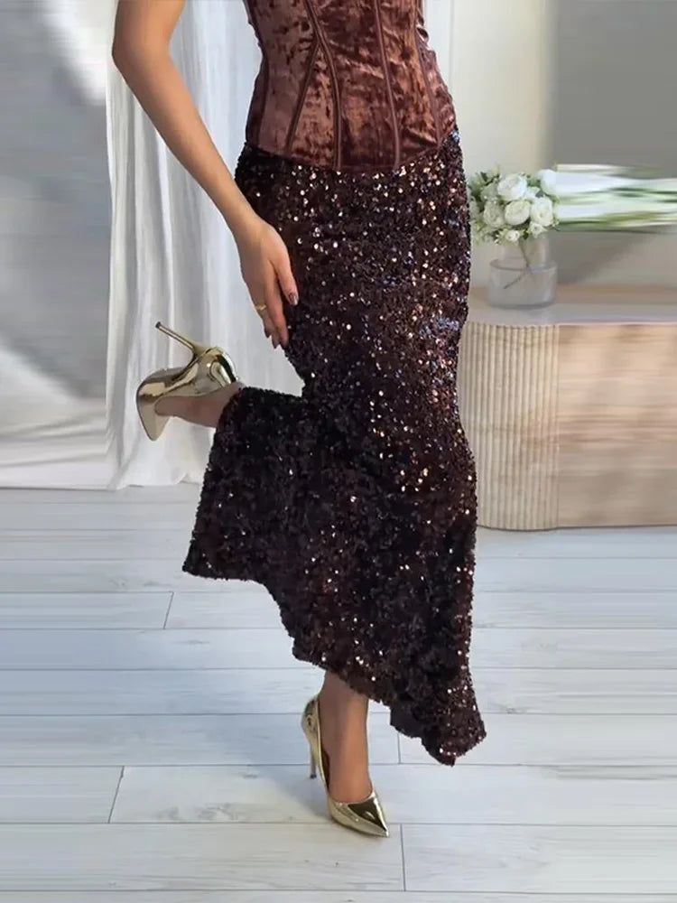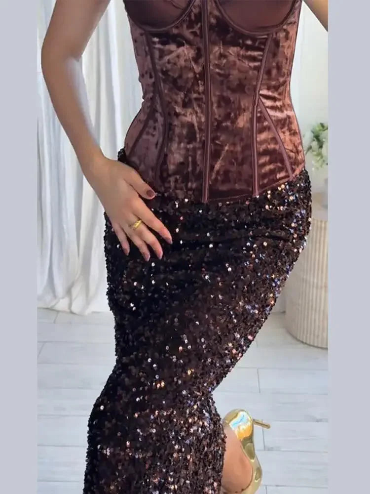 Bustier in Velluto e Gonna a Sirena Paillettata "Éclat Notturno"