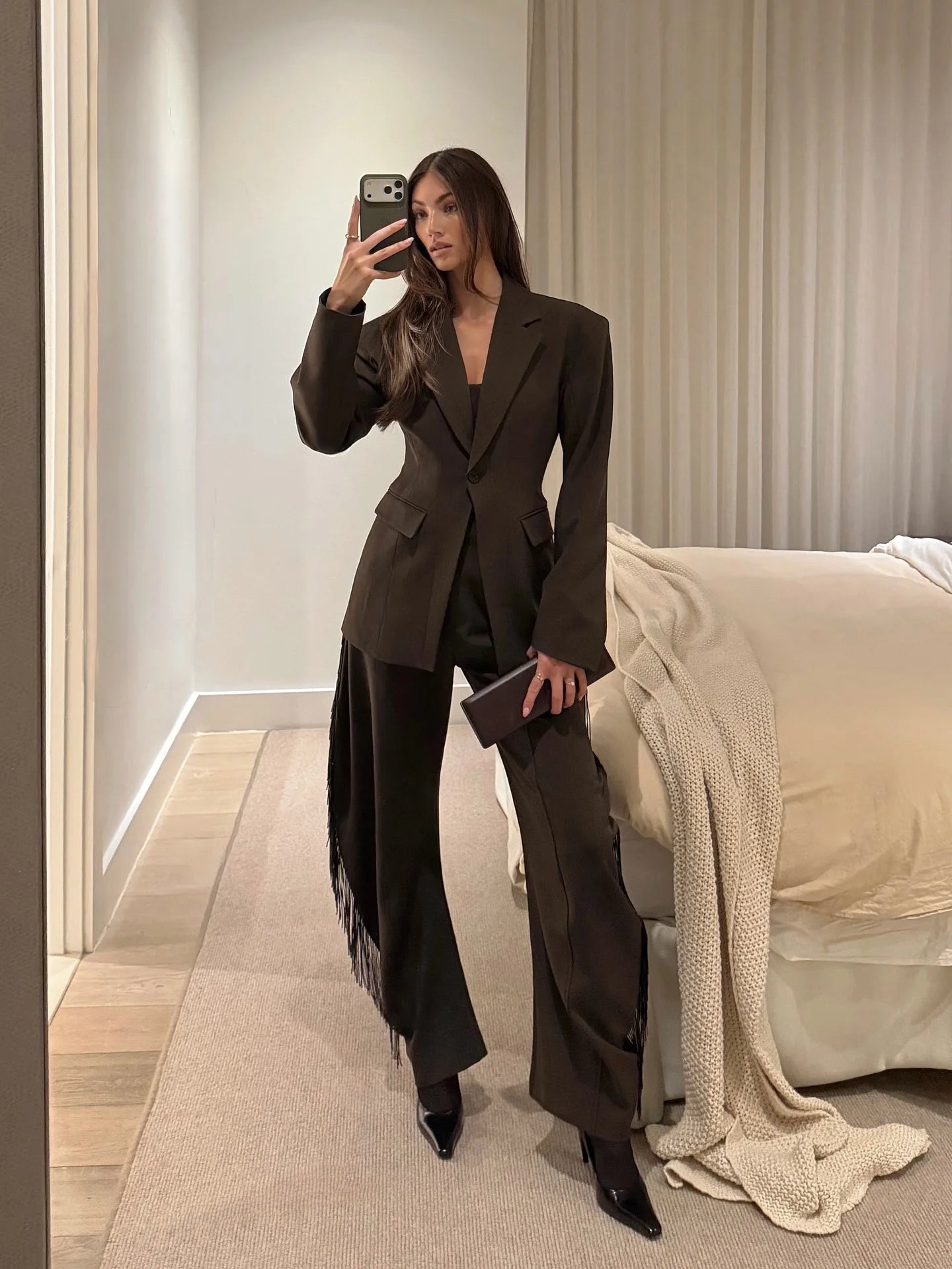 Versatilità Garantita: Indossa il completo insieme per massima formalità o separa i pezzi per creare outfit diversi. La giacca valorizza jeans e vestiti, i pantaloni si abbinano a camicie, bluse e top eleganti.