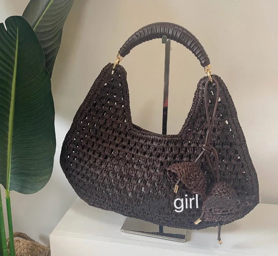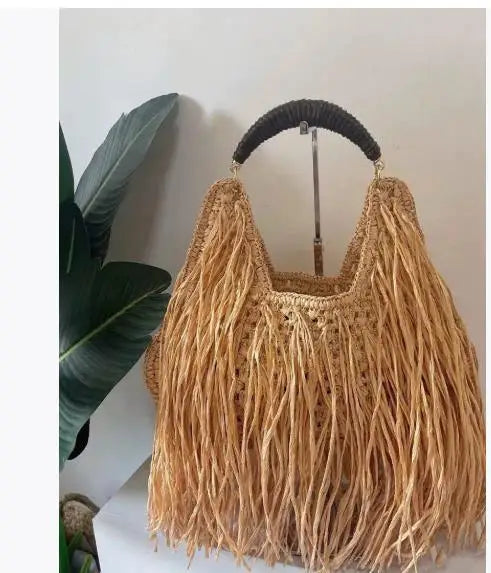 Borsa tote luxury in paglia intrecciata con elegante design traforato e nappine decorative. Perfetta per la spiaggia, il tempo libero o come accessorio chic per la città.