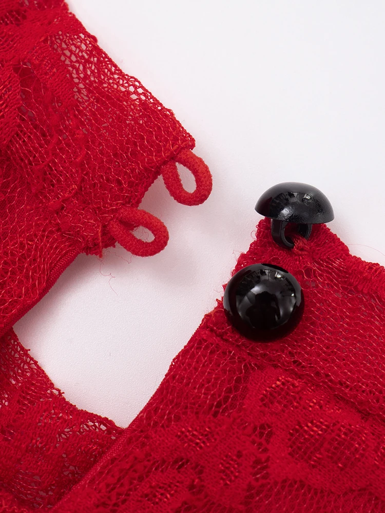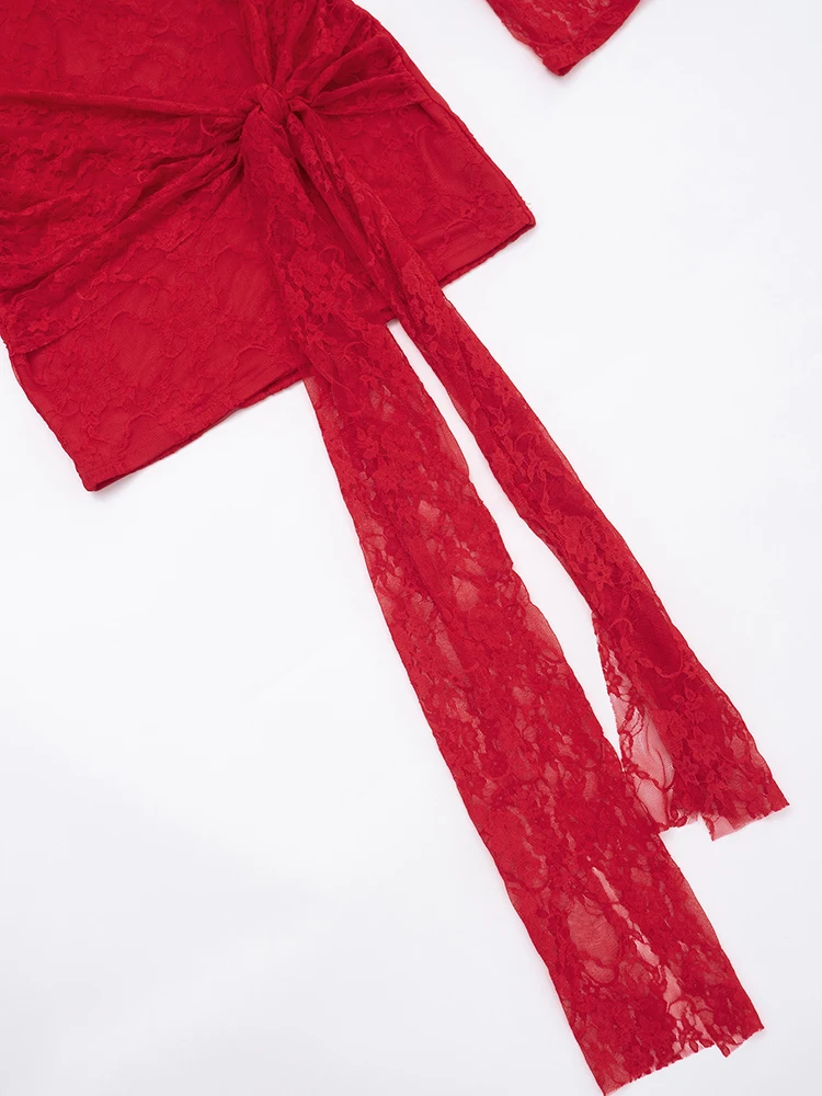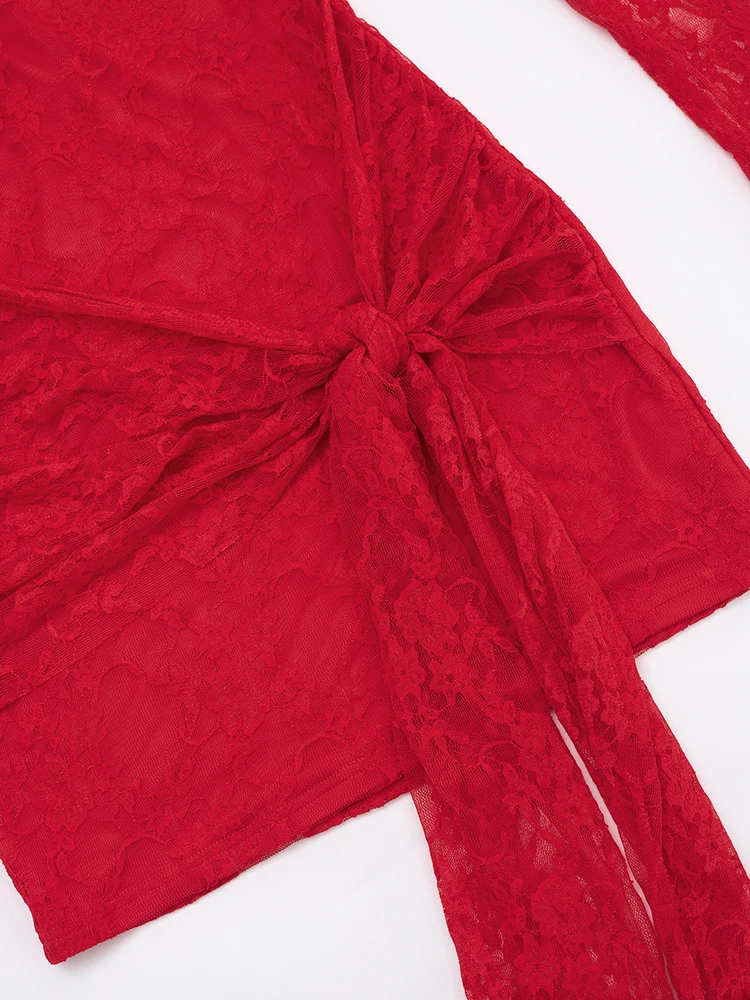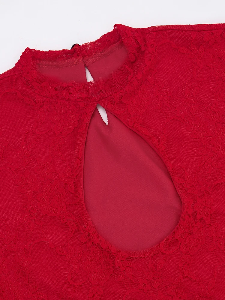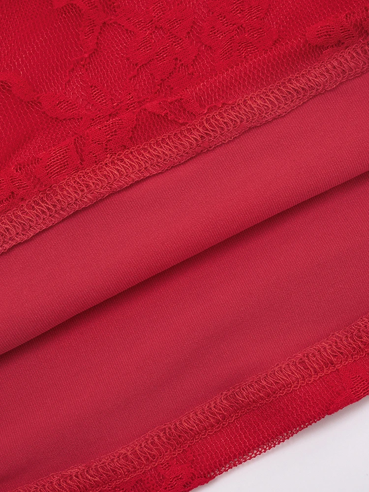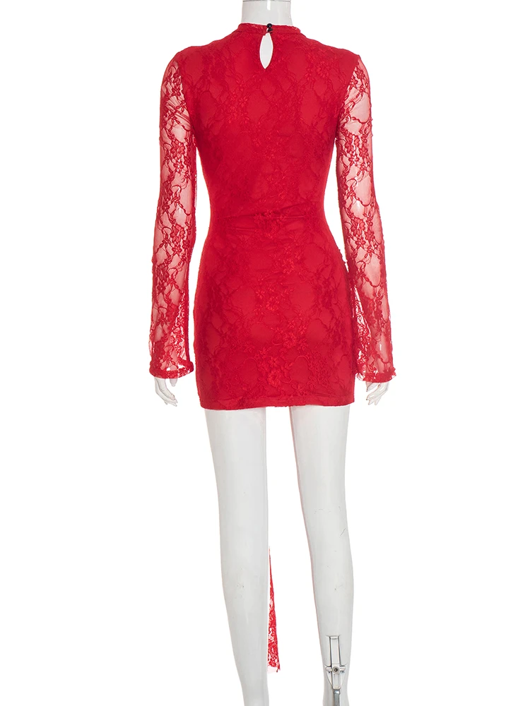 "Accendi la serata con il nostro Mini Abito "Fiamma", l'emblema della seduzione elegante. Realizzato interamente in delicato pizzo rosso, questo vestito è il capo ideale per chi desidera un look che non passi inosservato.