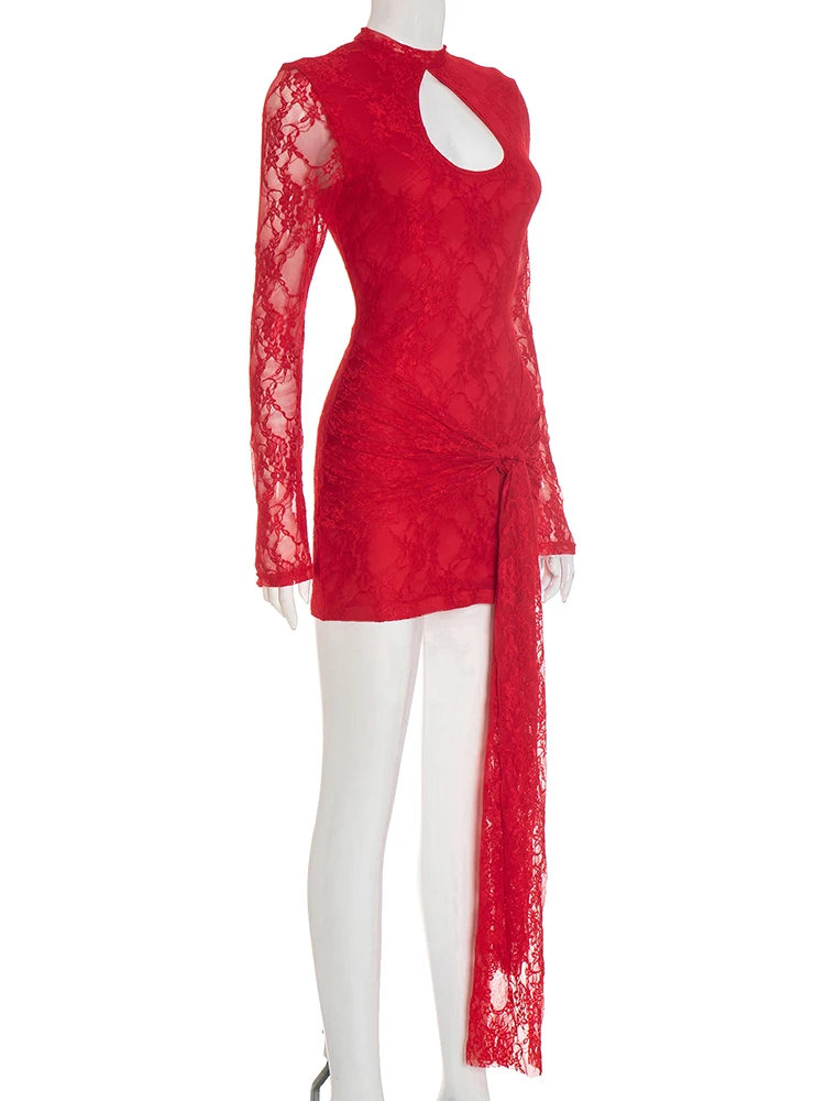 Mini Dress Elegante Rosso con Cut-out e Dettagli Drappeggiati