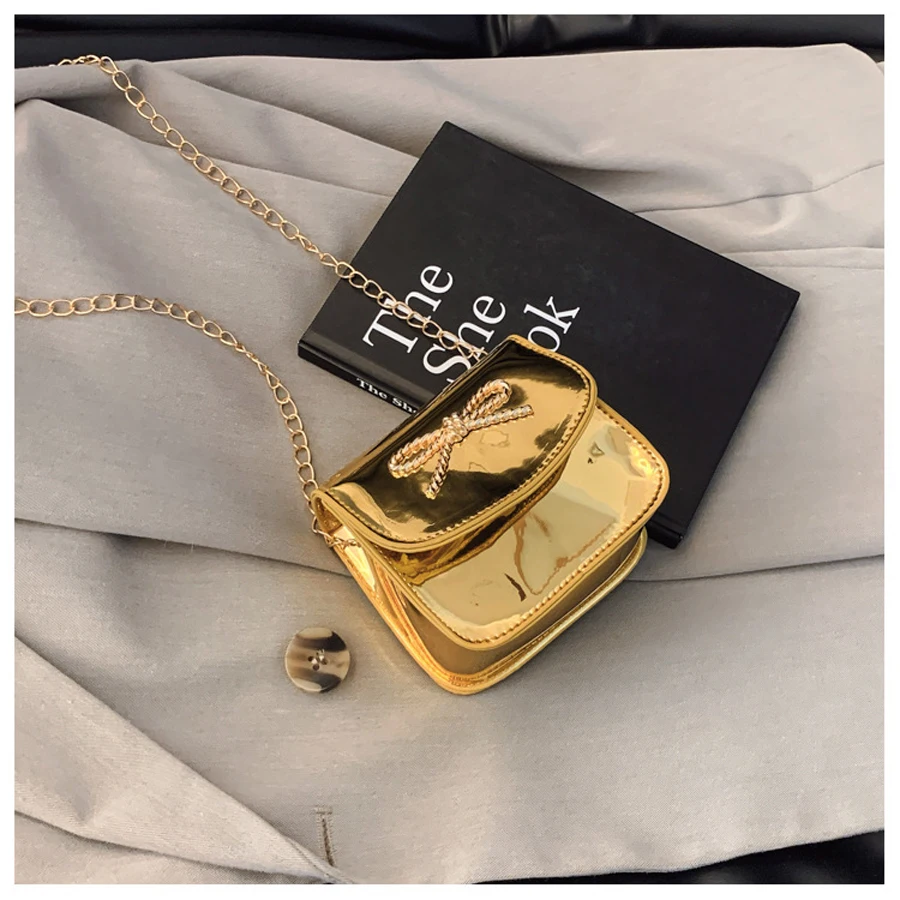Design Irresistibile: Linee pulite, finitura metallizzata e lucida che cattura la luce, e un delicato fiocco tridimensionale dorato sul davanti che le rende uniche.