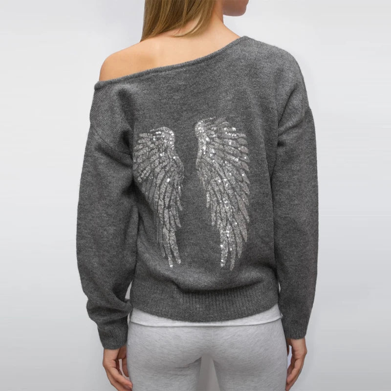 - Felpa con cappuccio decorata con ali d'angelo in paillettes scintillanti