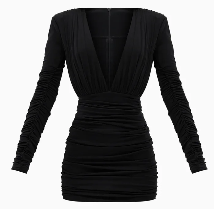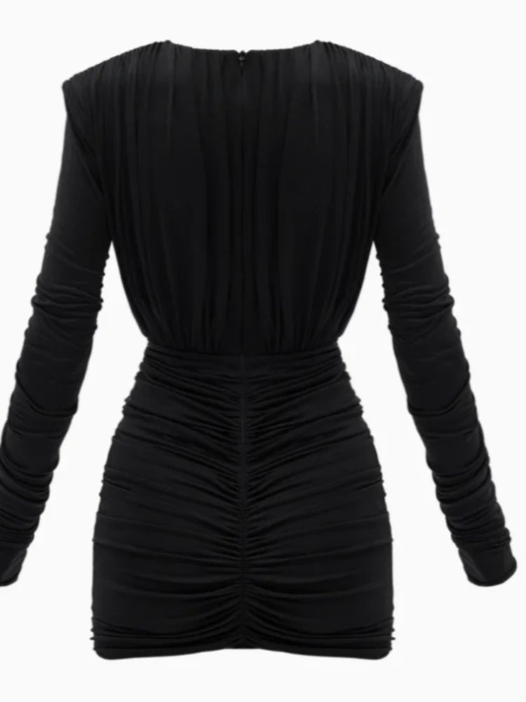 Mini Abito "Power Shoulder" con Scollo a V Profondo