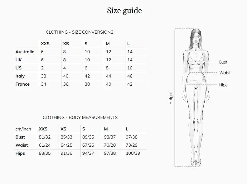 Taglie: XXS, XS, S, M, L