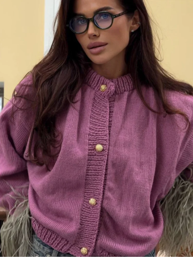 "Aggiungi un tocco di glamour e audacia al tuo guardaroba con il nostro esclusivo Cardigan Oversize modello Purple Reign.