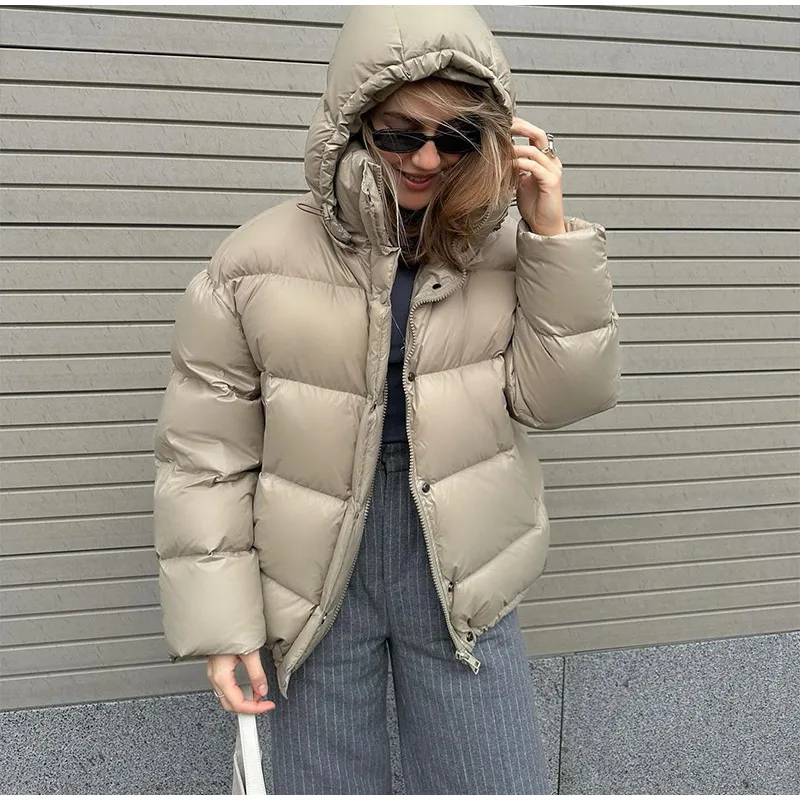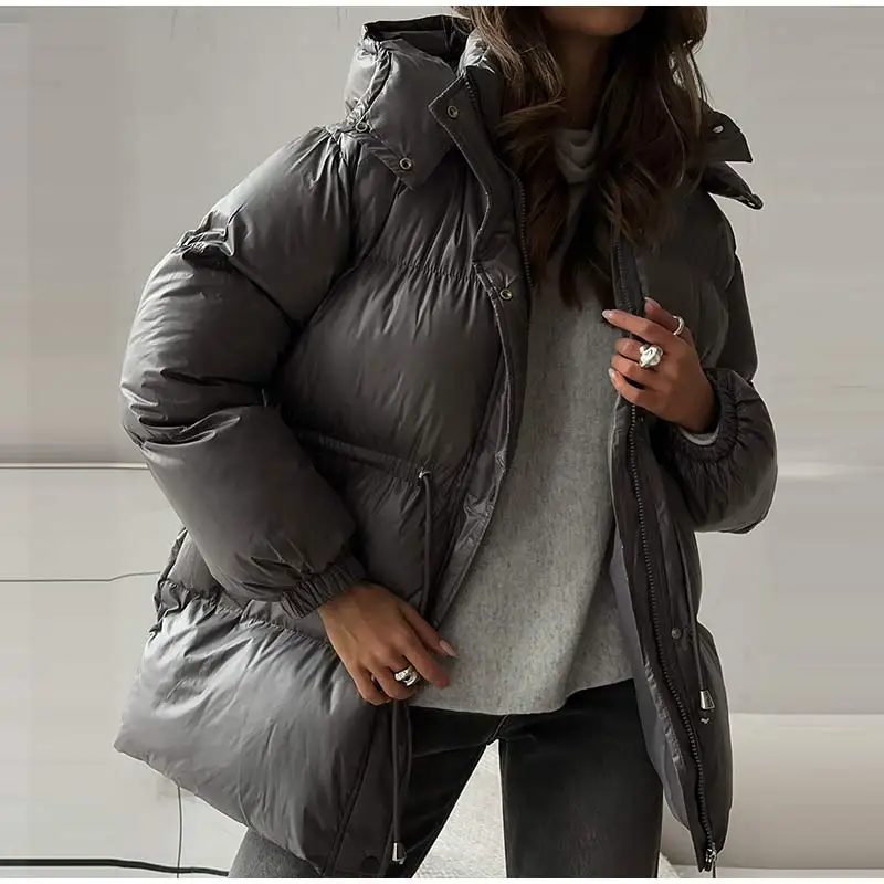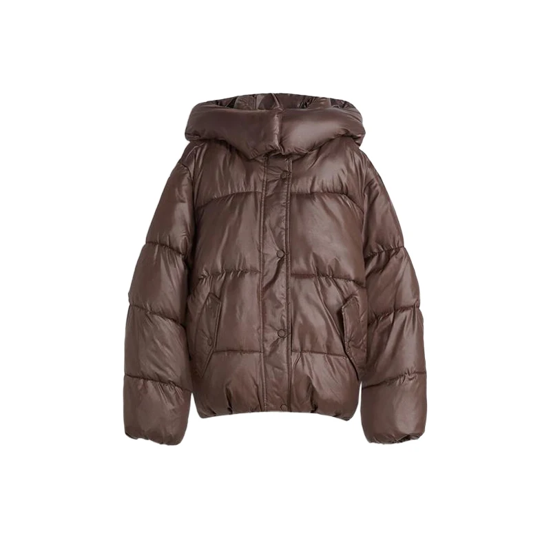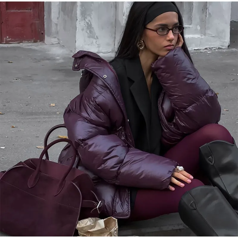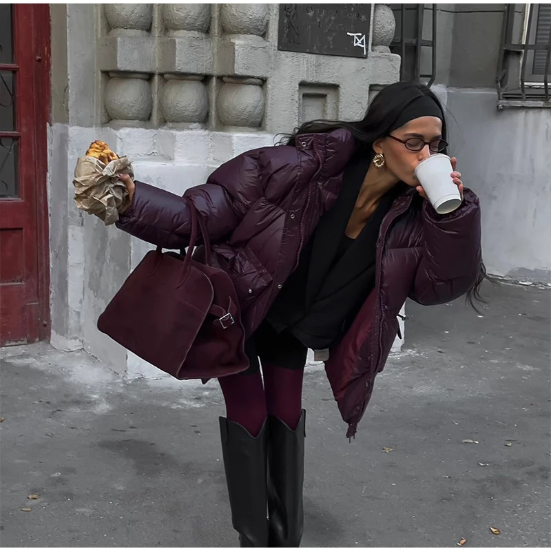 Cappotto invernale da donna in caldo cotone bordeaux con cappuccio,con collo alto e cerniera