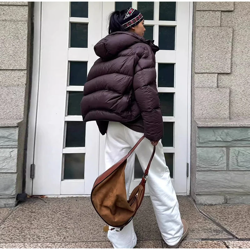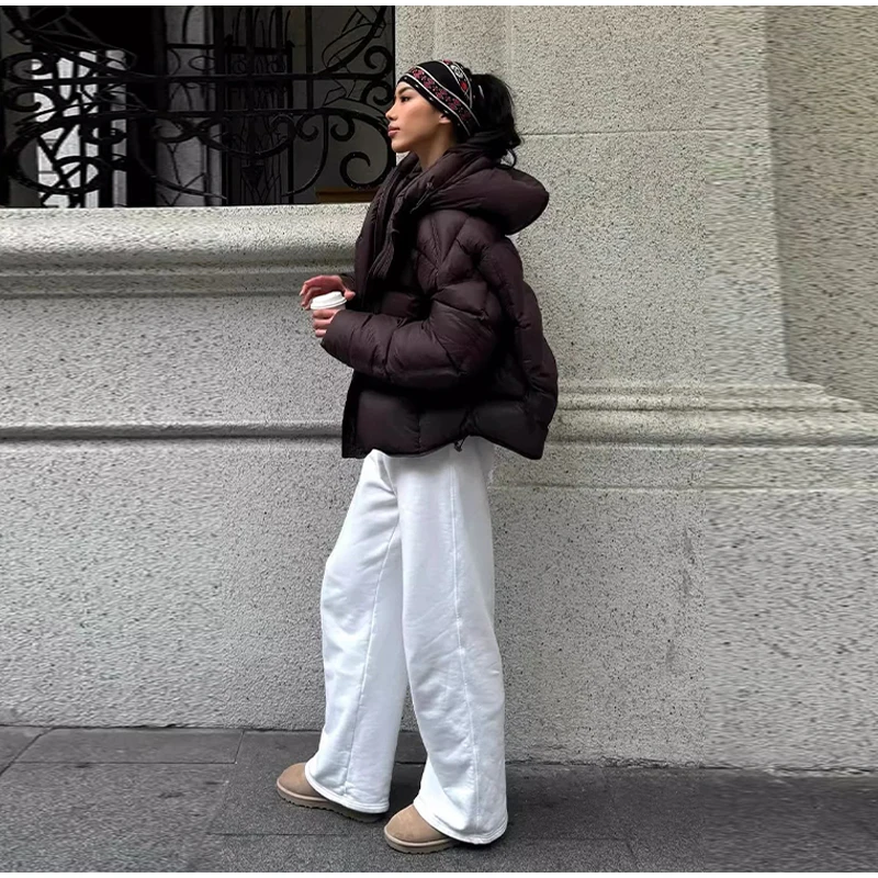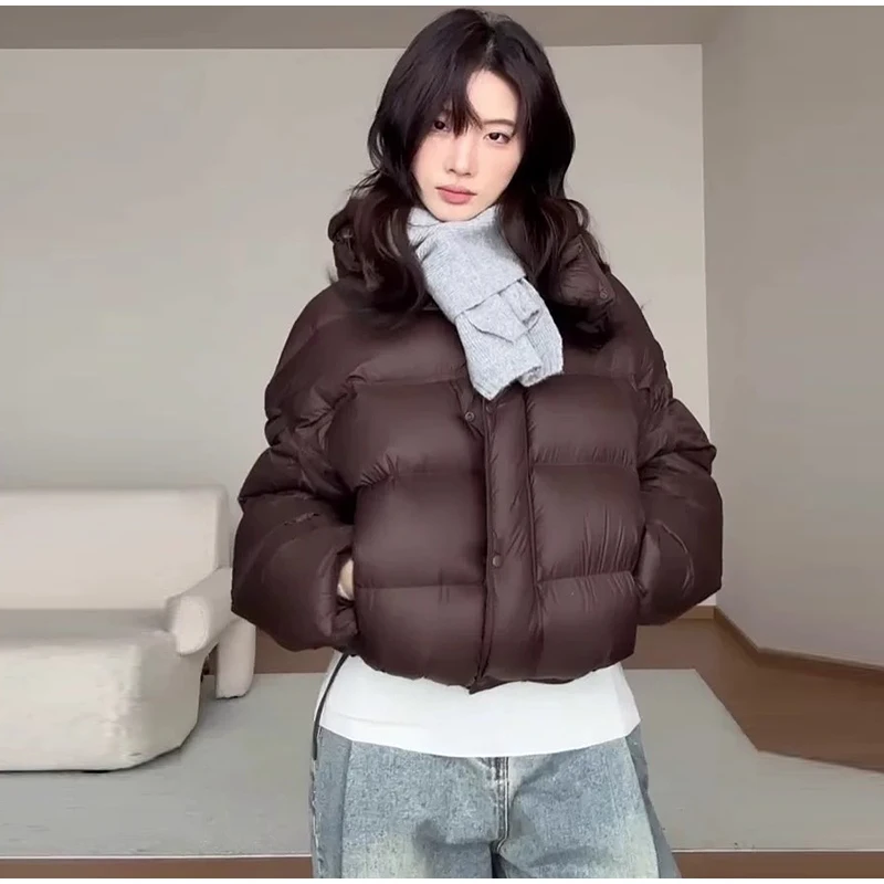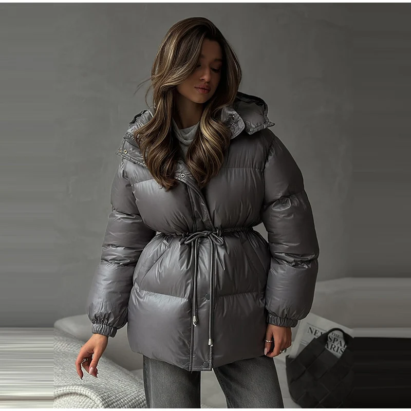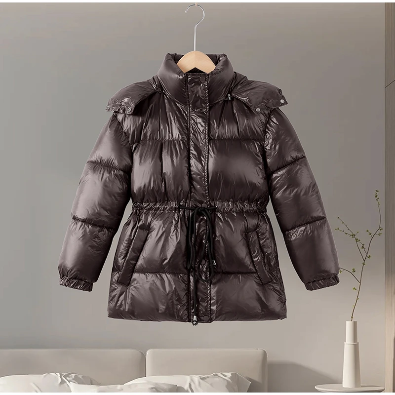 Cappotto invernale da donna in caldo cotone bordeaux con cappuccio,con collo alto e cerniera