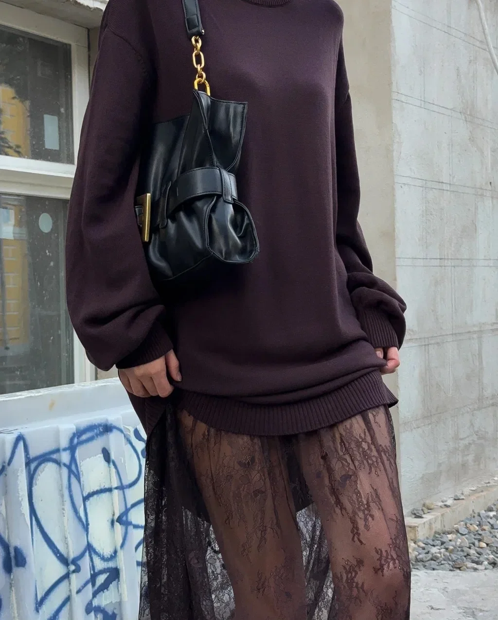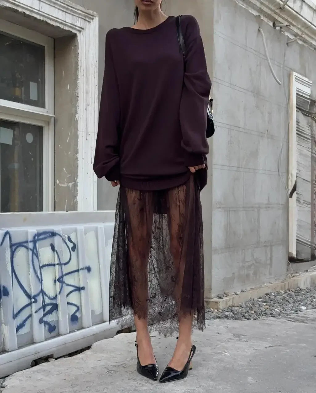 L'Eleganza del Layering: Maglione Oversize e Pizzo Notturno
