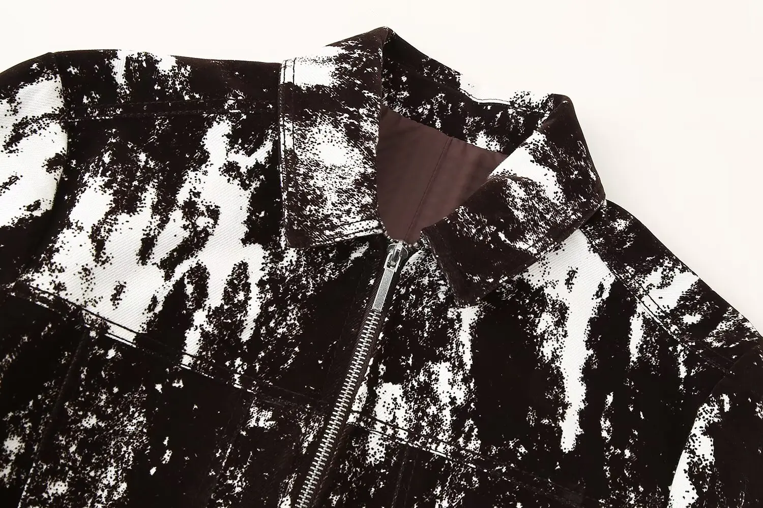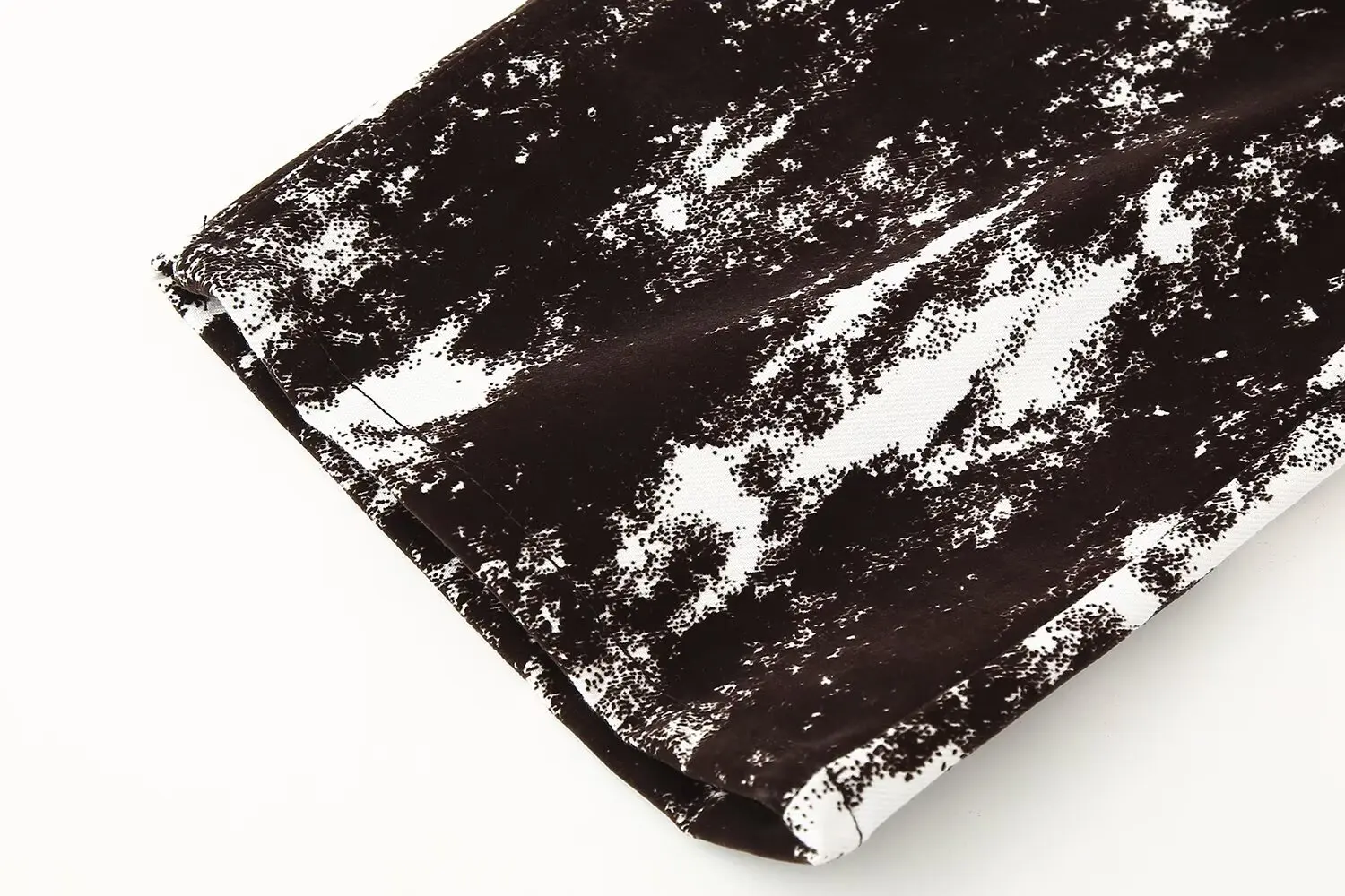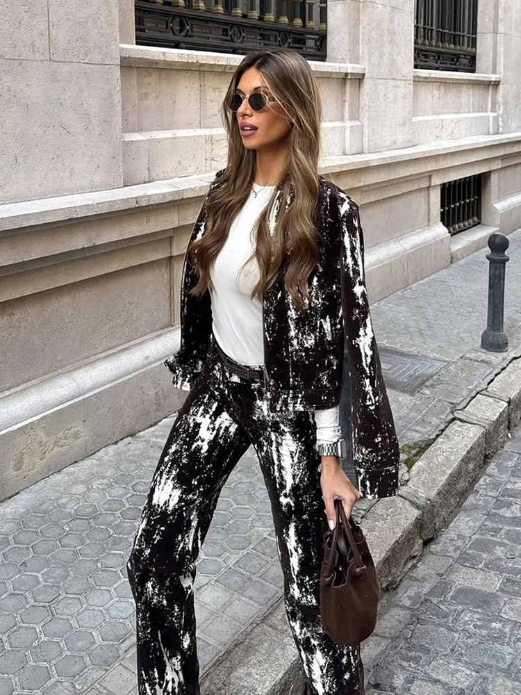Coordinato Effetto Artistico B&N: Giacca e Pantalone con Stampa Ispirata